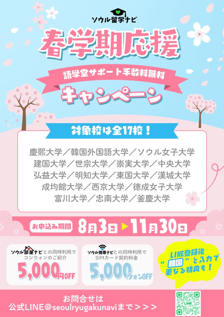 現在ソウル留学ナビではライトプランの手数料が無料になる春学期応援キャンペーンを実施中です😊